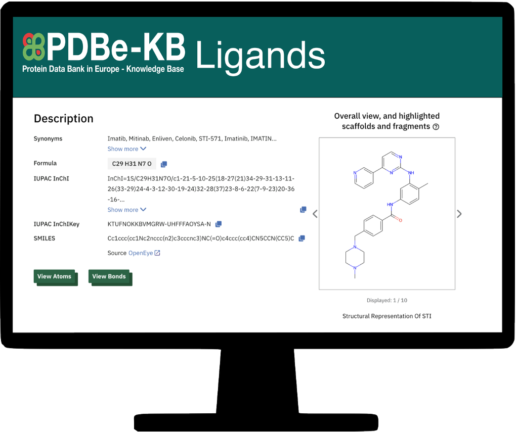 An interactive webpage to explore the structures of ligands in the PDB including their substructures and fragments, physicochemcial properties, and interactions with proteins.